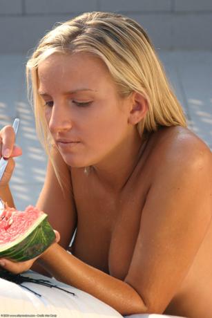 Allie Asia in Teen Dreams set Allie Asia On The Patio In Blue Bikini